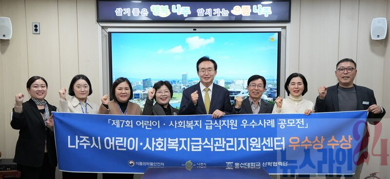 나주시(시장 윤병태)는 ‘나주시 어린이 사회복지 급식관리지원센터(이하 센터)’가 식품의약품안전처가 주최한 제7회 어린이 사회복지 급식지원 우수사례 공모전에서 우수상을 수상했다고 21일 밝혔다.