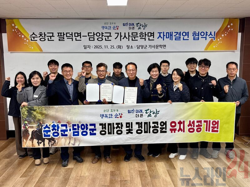 담양군 가사문학면과 순창군 팔덕면은 25일 가사문학면 회의실에서 자매결연 협약을 체결했다.