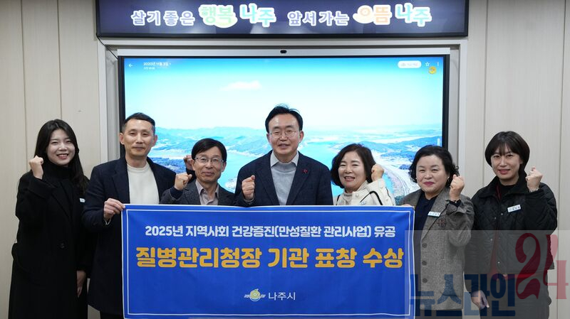 28일 나주시에 따르면 보건소 건강증진과는 2025년 호남권 만성질환 관리사업 ‘지역사회 건강증진’ 분야에서 우수 유공기관으로 선정돼 질병관리청장 표창을 수상했다.