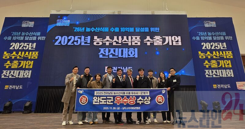 완도군은 지난 11월 28일 전남 무안군에서 열린 「2025년 전남 농수산식품 수출 우수 시군 평가」에서 22개 시군 중 우수상을 수상했다.