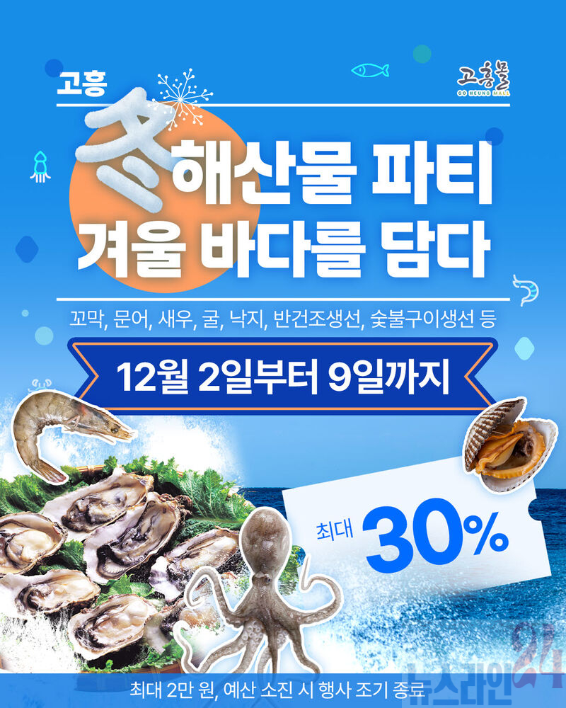고흥몰, 고흥 동(冬)해산물 파티–겨울 바다를 담다 기획전 개최 꼬막·문어·새우·굴·낙지·반건조 생선·숯불구이 생선 등 최대 30% 할인