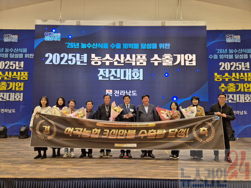 전남 곡성군(군수 조상래)은 지난 11월 28일(금) 남악 스카이웨딩컨벤션에서 열린‘2025년 농수산식품 수출기업 전진대회’에서 관내 소재한 석곡농업협동조합이 30만 불 수출탑을 수상했다고 2일 밝혔다.
