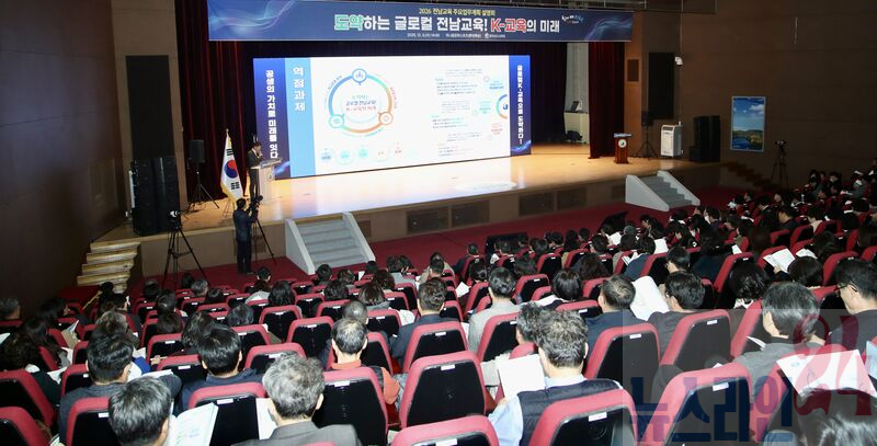 전남교육청은 12월 3일 화순 하니움문화스포츠센터에서 ‘2026 전남교육 주요업무계획 설명회’를 개최했다. 행사에는 도내 각급 학교 교(원)장, 교육지원청 교육장, 본청 및 직속기관 관계자, 전라남도의회 교육위원 등 1,000여 명이 참석하며 성황을 이뤘다.