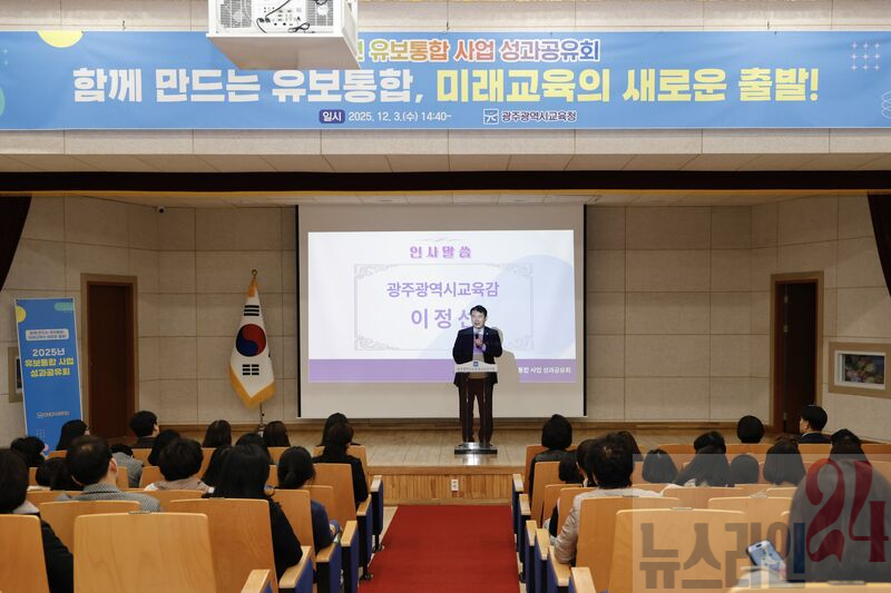 광주시교육청(교육감 이정선)은 3일 광주시교육청교육연수원에서 유치원·어린이집, 지자체, 유관기관 등 관계자 200여 명이 참석한 가운데 ‘2025년 유보통합 사업 성과 공유회’를 개최했다.