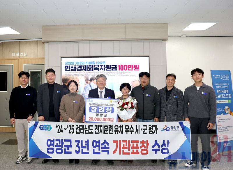영광군(군수 장세일)이 전라남도에서 실시한‘2024~2025 전지훈련 유치 평가’에서 장려상(기관표창)을 수상하며 3년 연속 수상이라는 성과를 달성해 지속적인 스포츠마케팅 추진과 체계적인 전지훈련 유치 활동의 성과를 다시 입증했다.
