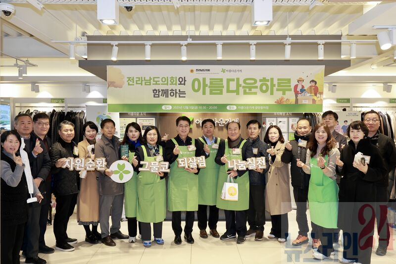 전라남도의회(의장 김태균)는 12월 5일 아름다운가게에서 ‘ESG 기부물품 전달식’을 열고, 의원과 직원들이 정성을 모아 기증한 자원순환 물품 2,639점을 전달했다.