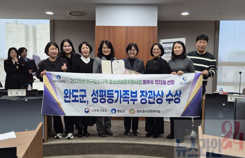 완도군이 「2025년 인구 감소 지역 청소년 성장 지원 사업」 시행 첫해 최우수 지자체로 선정되어 성평등가족부 장관상을 수상했다.