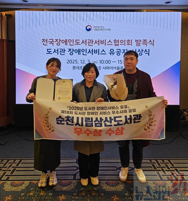 순천시는 지난 3일 세계 장애인의 날을 맞아 열린 ‘2025년 도서관 장애인서비스 유공’ 시상식에서 순천시립삼산도서관이 우수상(국립장애인도서관장상)을 수상했다고 밝혔다.