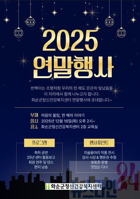 박미라 화순군보건소장은 “이번 연말 행사를 통해 정신장애인 및 가족의 사회적 고립감이 완화되는 계기가 되기를 바라고, 지난 한 해를 돌아보며 서로를 격려하고, 2026년을 행복하게 맞이할 수 있기를 바란다”라고 전했다.