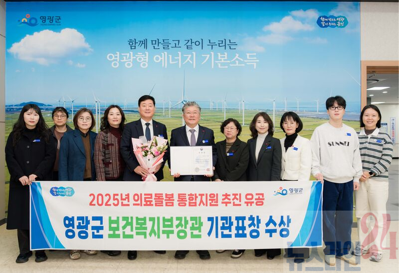 영광군은 12월 5일 보건복지부가 주관한 “2025년 의료·요양·돌봄 통합지원 성과대회”에서 유공 기관으로 선정되어 보건복지부 장관 표창을 수상했다.