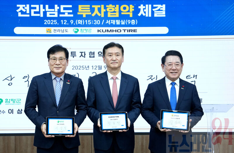 전남도-금호타이어, 함평에 미래형 스마트 타이어 생산기지 9일 6천609억원 투자협약…글로벌 모빌리티 전략 거점 기대