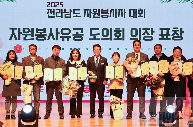 김태균 전남도의장은 12월 10일 전남도청 김대중강당에서 개최된 ‘2025 전라남도 자원봉사자 대회’에 참석하여 유공자 표창 수여와 함께 자원봉사자들에게 감사의 마음을 전했다.