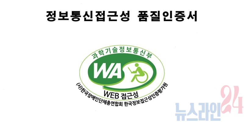 웹 접근성 품질인증 마크는 장애인과 고령자가 웹사이트에서 제공하는 정보를 비장애인과 동등하게 접근하고 이용할 수 있도록 보장하는 ‘웹 접근성 표준지침’을 준수한 우수 사이트에 대해 과학기술정보통신부에서 품질마크를 1년간 부여하는 제도다.