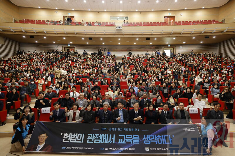 광주시교육청(교육감 이정선)은 12일 광주시교육청교육연수원에서 교직원 1천명을 대상으로 문형배 전 헌법재판관 초청 연수를 진행했다.