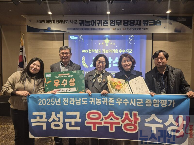 전남 곡성군(조상래 군수)은 전라남도가 실시한 2025년 귀농귀촌분야 종합평가에서 우수상을 받았다고 12일 밝혔다.