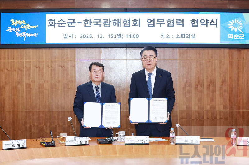 화순군(군수 구복규)은 15일 한국광해협회(회장 김장남)와 폐광지역 광해방지사업의 효과적 추진을 위한 업무협약(MOU)을 체결했다고 밝혔다.