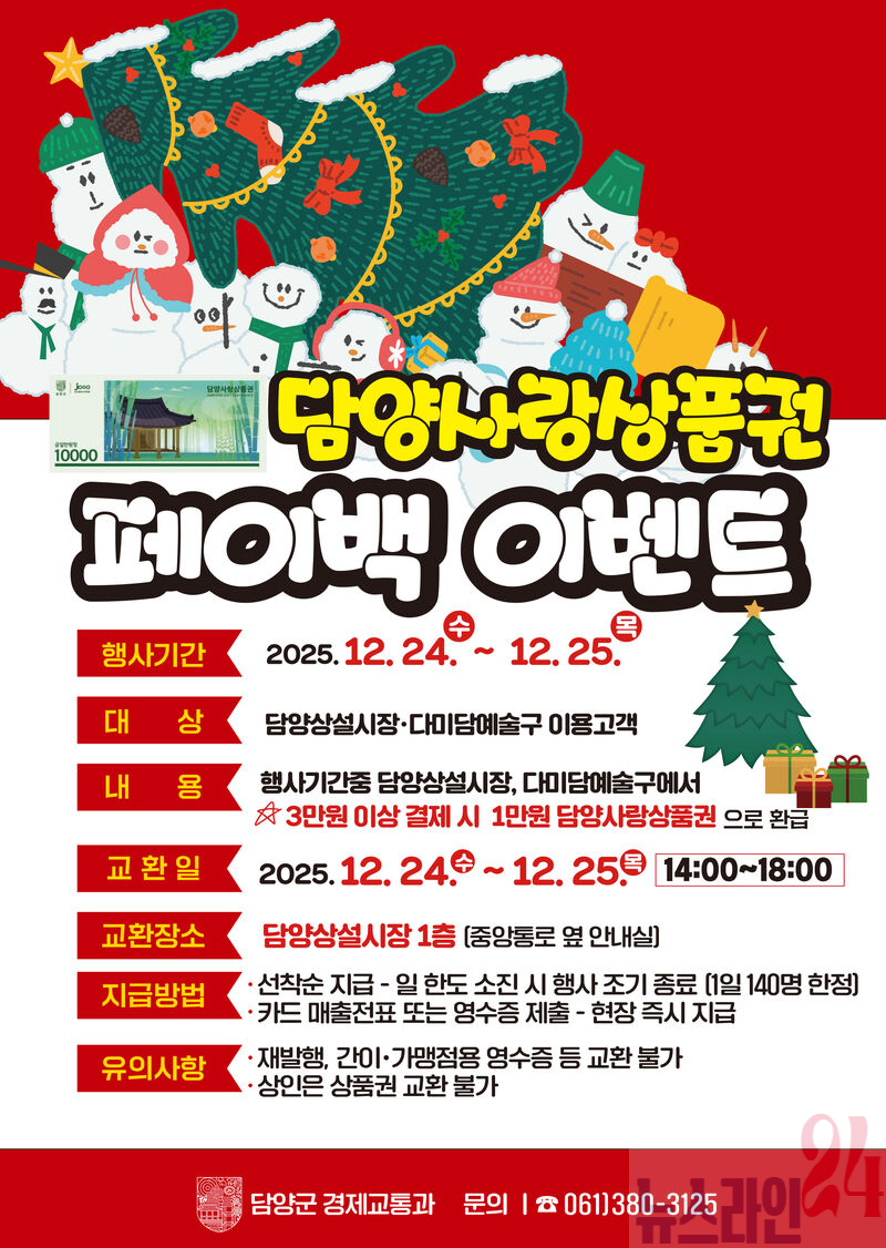연말 장보기는 담양에서… 담양사랑상품권 페이백 행사 지역경제 활력 회복 및 전통시장 이용 촉진 기대