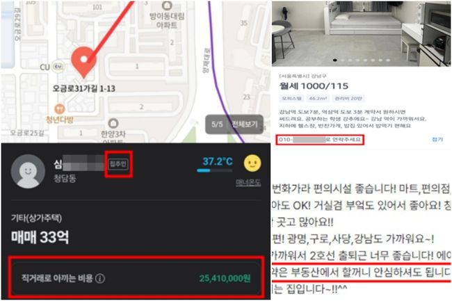 부동산 직거래플랫폼 내 부동산 불법광고 의심사례