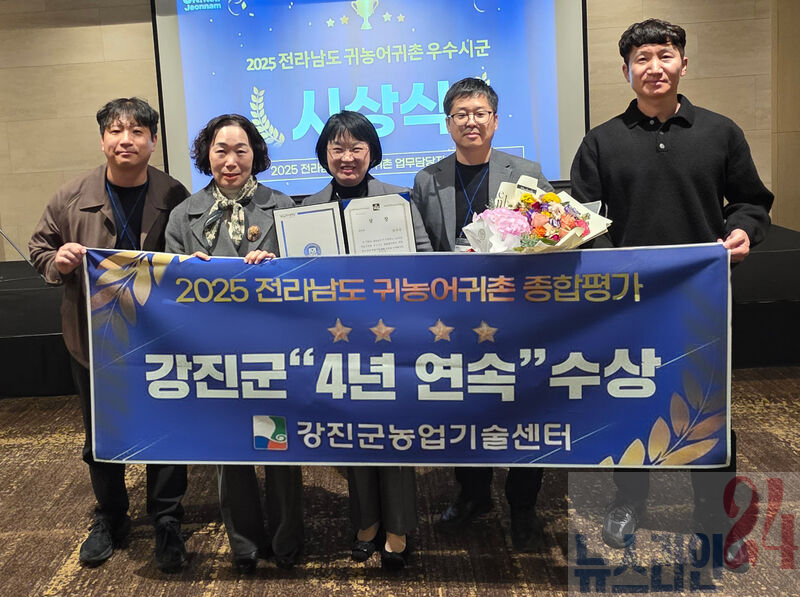 강진군 2025 귀농어귀촌 종합평가 4년 연속 수상 전남도 평가 결과 귀농귀촌 성공 방정식 4년 연속 증명했다 디지털 교육·활발한 소통·공모사업 지속가능한 귀농모델 선도