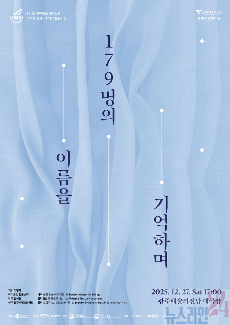 광주광역시(시장 강기정)는 오는 26일과 27일 오후 광주예술의전당 대극장에서 ‘12·29 여객기 참사 1주기 추모공연’을 연다.