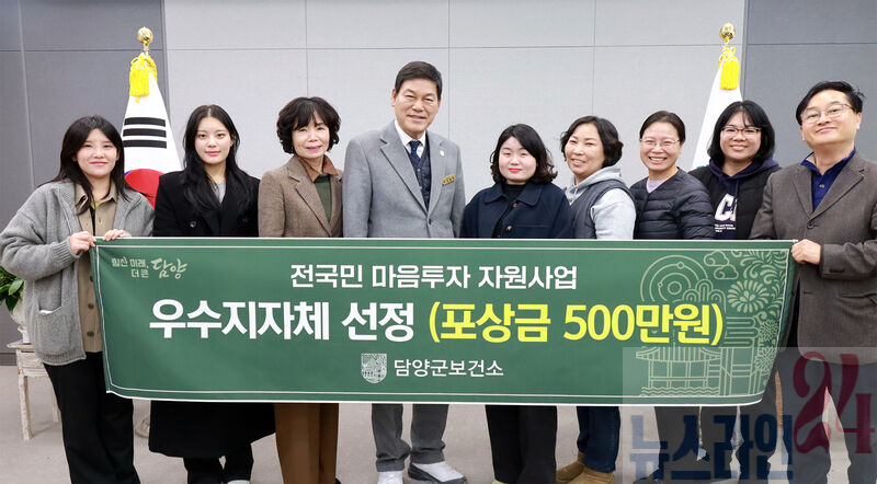 담양군(군수 정철원)은 군민의 마음 건강을 위한 정책을 꾸준히 추진해 온 성과를 인정받아 보건복지부 주관 ‘전국민 마음투자 지원사업 평가’에서 우수 지자체로 선정, 포상금 500만 원을 수상했다고 밝혔다.