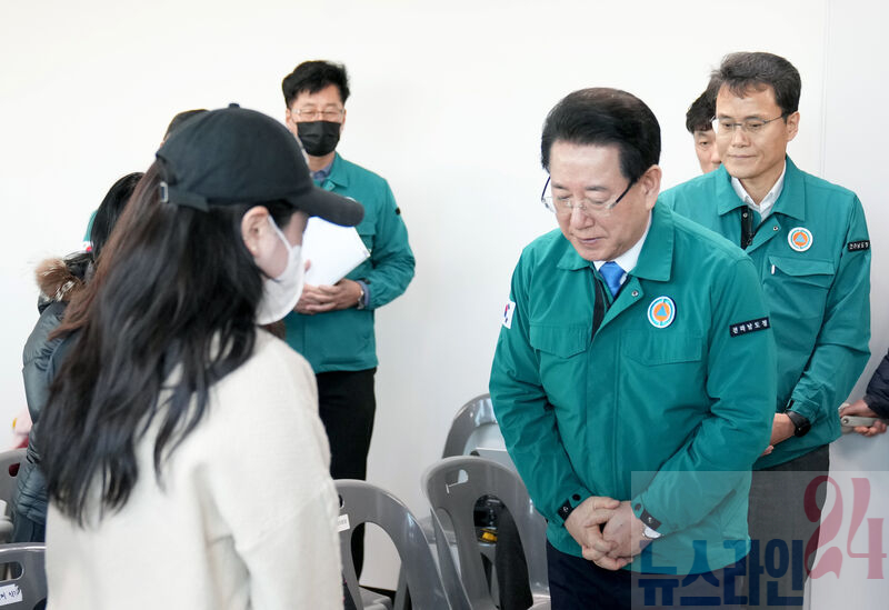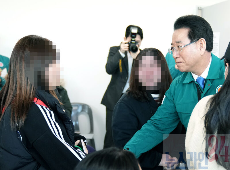 김영록 전라남도지사가 13일 여수 수협 청정위판장을 방문, 제22서경호 침몰사고 피해자(실종자) 가족들을 위로하고 있다.