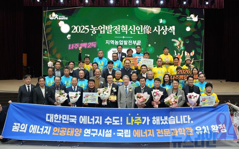 전라남도 나주시가 농업 경쟁력 강화와 농업소득 증대를 위한 지속적인 정책 추진 성과를 인정받아 농협중앙회가 주관한 ‘2025 농업발전 혁신인상’ 지역농업발전부문 수상기관으로 선정됐다.