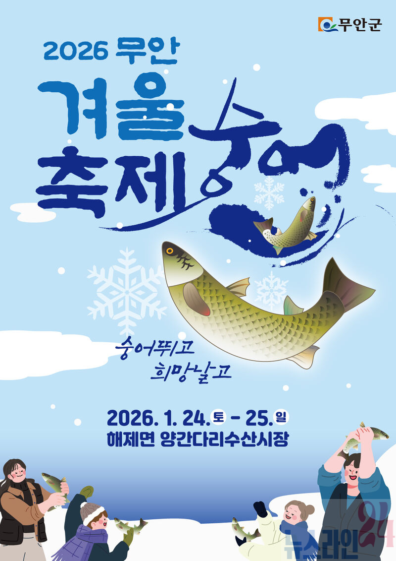 전남 무안군(군수 김산)은 겨울철 최고의 별미로 꼽히는 숭어를 소재로 오는 1월 24일(토)부터 25일(일)까지 해제면 주민다목적센터와 양간다리 수산시장에서‘2026 무안겨울숭어축제’를 개최한다.