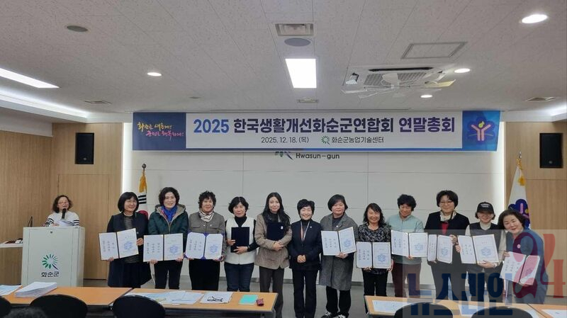 화순군(군수 구복규)은 지난 18일 농업기술센터 세미나실에서 한국생활개선화순군연합회(회장 김점순)가 회원 46명이 참석한 가운데, 올 한 해를 마무리하는 연말 총회를 개최했다고 밝혔다.