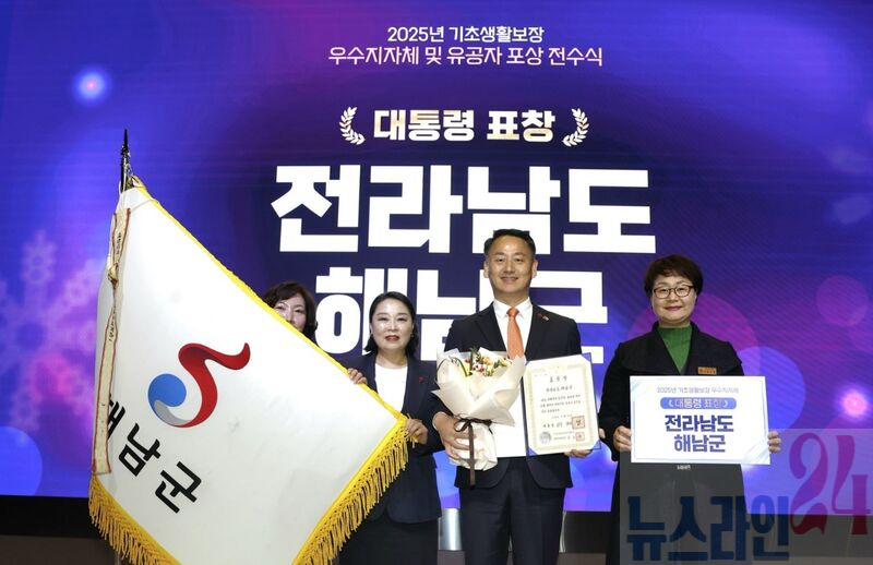 해남군이 보건복지부 주관 2025년 기초생활보장 우수지자체 및 유공자 포상 전수식에서 최고 영예인 대통령 표창을 수상했다.