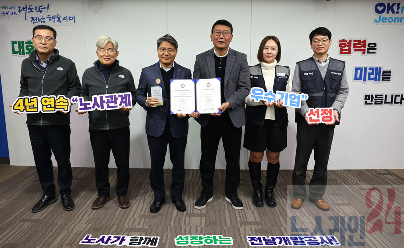 전남개발공사(사장 장충모)는 한국경영인증원(KMR)으로부터 4년 연속 노사관계우수기업 인증을 획득했다고 29일 밝혔다.