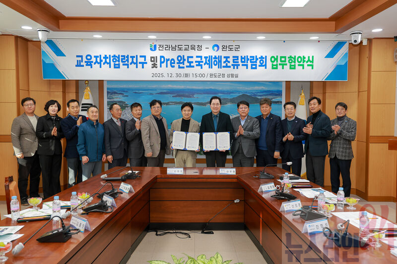 완도군은 지난해 12월 30일 전라남도교육청과 교육자치협력지구의 원활한 사업 운영과 2026 Pre완도국제해조류박람회 협력 체계 구축을 위한 업무 협약을 체결했다.