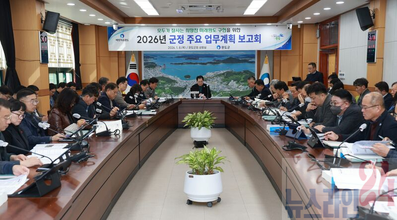 완도군은 지난 8일 군청 상황실에서 「2026년도 군정 주요 업무 계획 보고회」를 개최하고 군정 운영 방향과 부서별 핵심 사업 추진 계획을 논의했다.