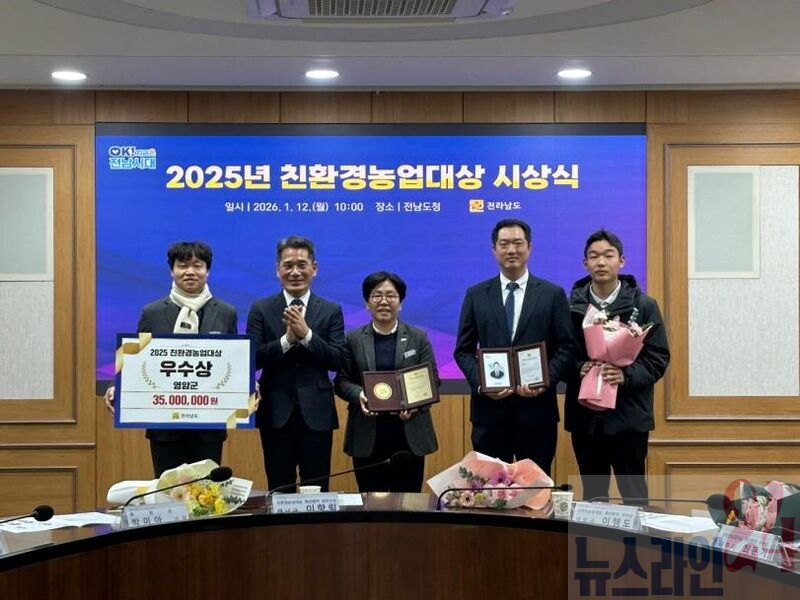영암군이 12일 전라남도의 ‘2025년 친환경농업대상 시상식’에서 우수상과 함께 상사업비 3,500만원, 포상금 150만원을 받았다.