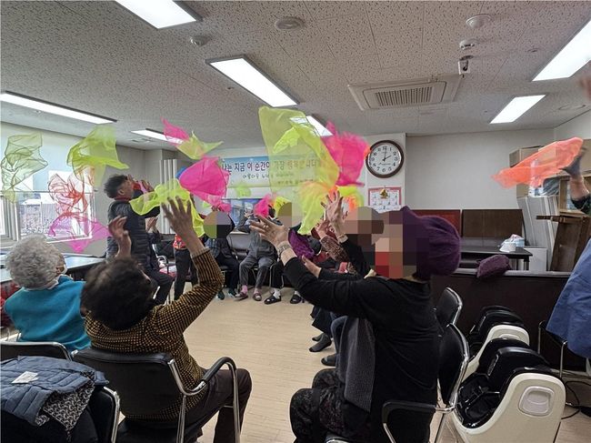 스카프를 활용한 실버놀샘터 프로그램 진행 모습