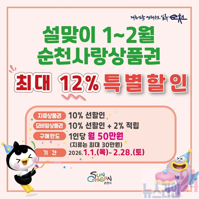 지역 내 소비 회복을 위한 정책도 대폭 강화된다. 순천시는 순천사랑상품권을 2,000억 원 규모로 발행해 전통시장과 골목상권의 매출 회복을 뒷받침한다. 평상시 할인 판매는 물론, 명절·재난 시에는 특별할인 판매를 통해 시민 체감도를 높이고 지역 소비를 유도할 계획이다.