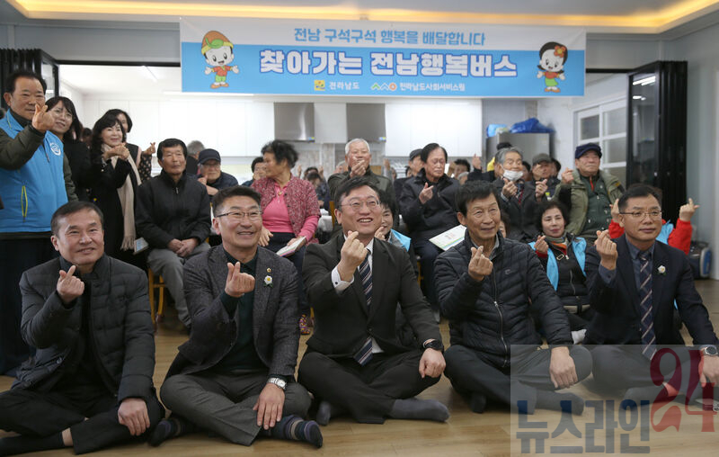 명창환 전남도 행정부지사가 17일 보성 동암마을에서 개최된 「찾아가는 전남행복버스」 2025년 도민속으로 출발식에 참석, 어르신 및 주요 참석자들과 기념촬영을 하고 있다.