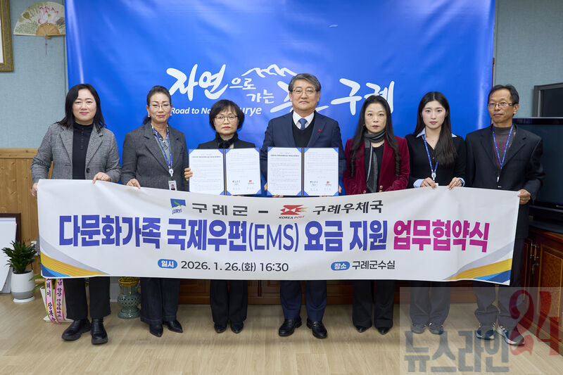 전남 구례군은 지난 26일 구례우체국(국장 박인자)과 ‘다문화가족 국제우편(EMS) 요금 지원’을 위한 업무 협약을 체결했다고 밝혔다.