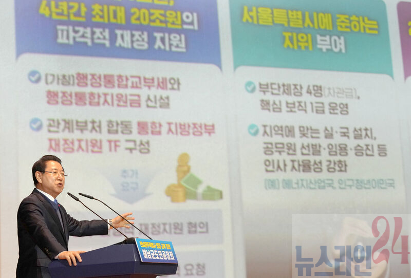 김영록 지사는 이날 서남권 3개 군 공청회에서 “해남·진도·완도는 농수산업과 해양관광을 기반으로 재생에너지·해양치유·AI·데이터센터 등 전남의 미래비전을 현실화할 성장 잠재력이 큰 지역”이라며 “행정통합을 통해 첨단산업과 해양·농수산 경쟁력을 강화하고 관광·정주여건 개선 등 서남권 도민이 체감할 변화를 만들겠다”고 강조했다.