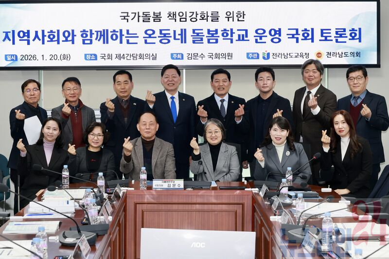 이 같은 논의 결과는 국회 정책토론회 ‘지역사회와 함께하는 온동네 돌봄학교 운영’에서 발표됐다. 토론회에서는 전남 미래형 늘봄학교 운영 성과를 공유하고, 공적 돌봄 강화를 위한 법률 제·개정 필요성과 국가·지자체 책무 명확화 방안이 함께 논의됐다.