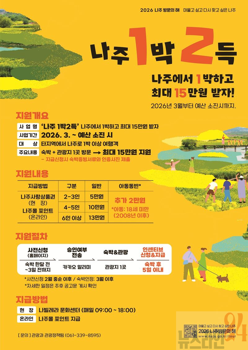 윤병태 나주시장은 “숙박업소는 체류형 관광의 핵심 기반이자 지역경제 활성화의 출발점”이라며 “이번 인센티브 사업을 통해 관광객이 나주에 머무르고 소비하는 흐름을 확실히 만들고 숙박업계와 지역 상권이 함께 성장하길 기대한다”고 말했다.