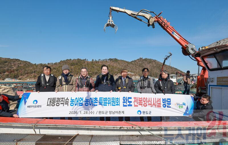 지난 1월 28일 대통령 직속 자문기구인 ‘농어업·농어촌 특별위원회(이하 농특위)’의 김호 위원장과 문승국 위원(한국해양수산신지식인중앙연합회장) 등이 완도군의 전복 양식장을 찾았다.