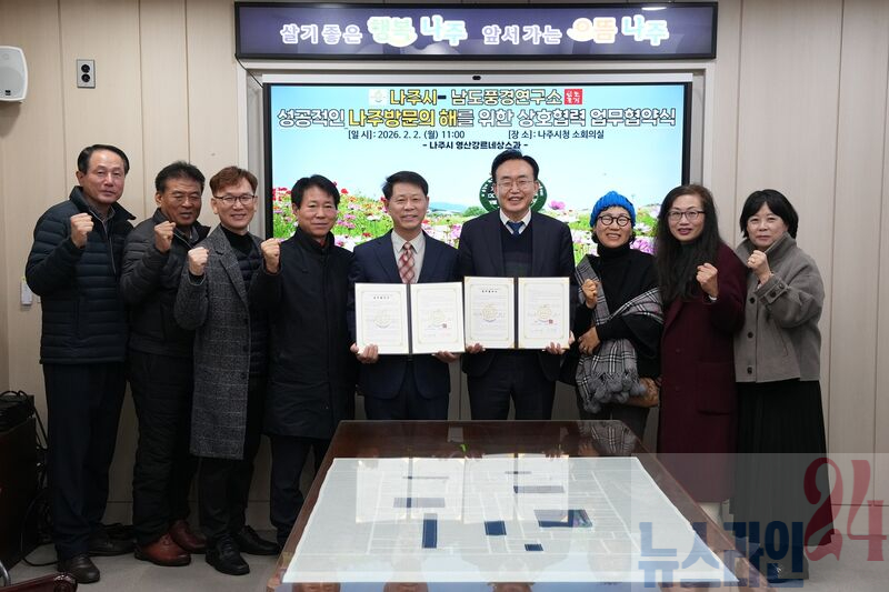 나주시(시장 윤병태)는 2일 시청 소회의실에서 남도풍경연구소(소장 최근영)와 나주시 관광자원의 기록·확산 및 ‘2026 나주방문의 해’ 성공 추진을 위한 업무협약을 체결했다고 밝혔다.