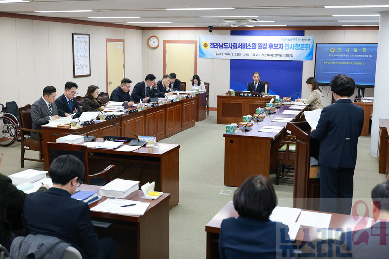 전라남도사회서비스원 원장 후보자(신미경)에 대한 전라남도의회 인사청문회가 2월 3일 보건복지환경위원회 회의실에서 열렸다.