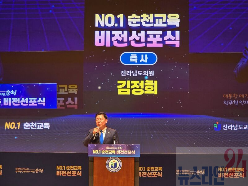 김정희 전남도의회 교육위원장은 2월 5일 순천만생태문화교육원에서 열린 「NO.1 순천교육 대통합 메가시티 인재육성 거점, 순천」 비전 선포식에 참석해 “교육을 통해 순천의 정주 여건을 강화하고, 도시 경쟁력을 되찾는 데 전남도의회 교육위원회가 앞장서겠다”라고 밝혔다.