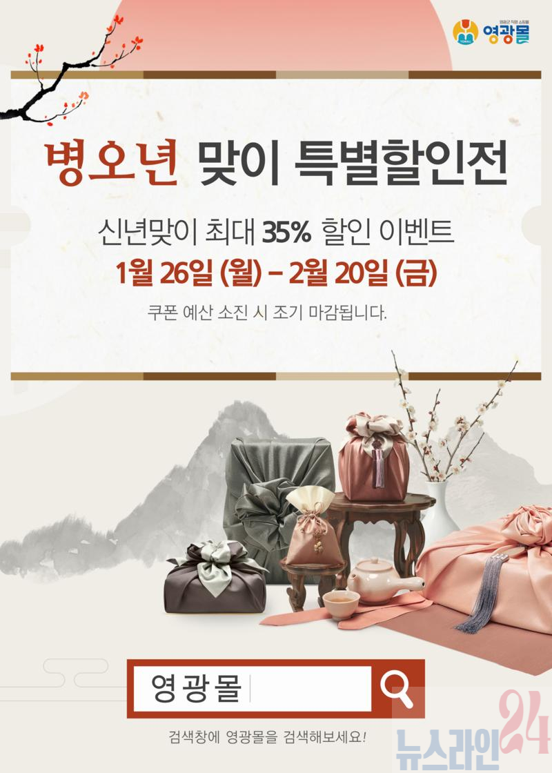 이번 할인전은 병오년 설 명절을 기념해 마련된 특별 기획 행사로, 오는 2월 20일까지 진행된다. 행사 기간 동안 영광몰에 입점한 다양한 농수축산물을 대상으로 최대 35%의 할인 혜택이 제공되며, 쿠폰 예산 소진 시 조기 종료될 수 있다.