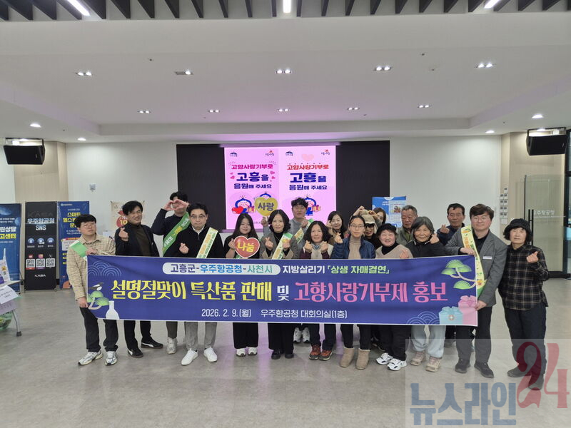 고흥군, 우주항공청·사천시와 손 맞잡고 지방살리기 나서다고흥군(군수 공영민)은 9일 우주항공청 대회의실(경남 사천시)에서 고흥군·우주항공청·사천시가 함께하는 설 명절맞이 특산품 판매 및 고향사랑기부제 홍보 행사를 개최했다고 밝혔다.