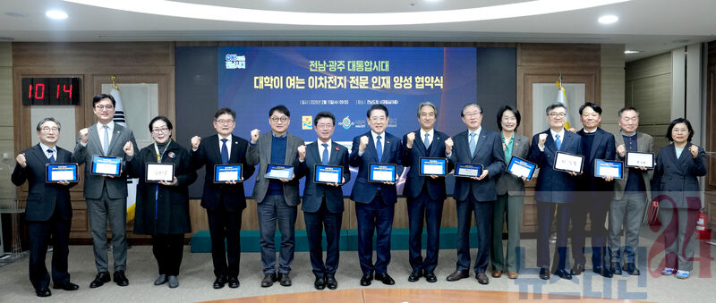 전라남도는 11일 광양시·나주시, 광주·전남 주요 대학과 이차전지 전문인재 양성을 위한 업무협약을 하고, 광양만권 이차전지 특화단지 유치와 조성에 필요한 인력 육성에 협력하기로 했다.