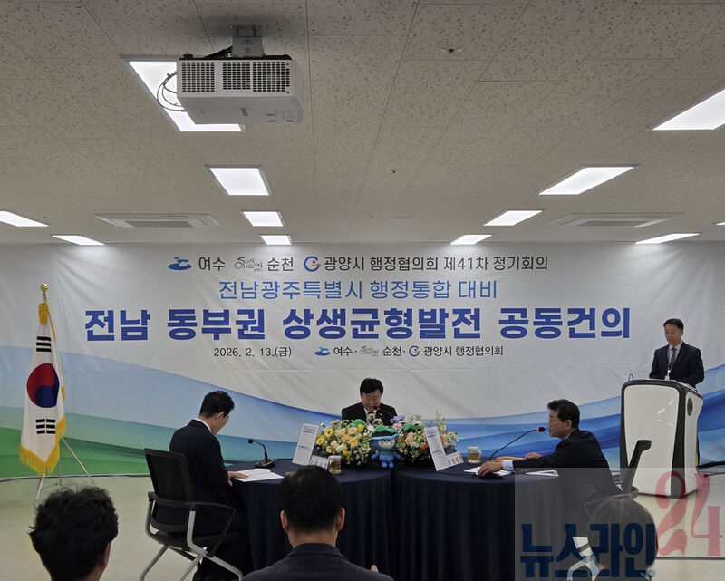 13일 여수시에 따르면, 협의회는 이날 국립순천대학교 우석홀에서 제41차 정기회의를 개최하고 행정통합이라는 거대한 변화의 흐름에서 전남 동부권의 밝은 미래를 담보하기 위한 공동건의 3건(여수시 발의 2건)을 공식 의결했다.