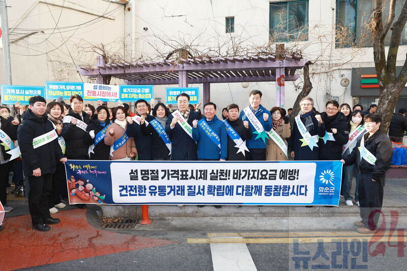 물가 안정 캠페인 추진 모습화순군(군수 구복규)은 13일 설 명절을 앞두고 치솟는 장바구니 물가를 안정시키기 위해 ‘민·관 합동 물가 안정 캠페인’을 펼쳤다고 밝혔다.